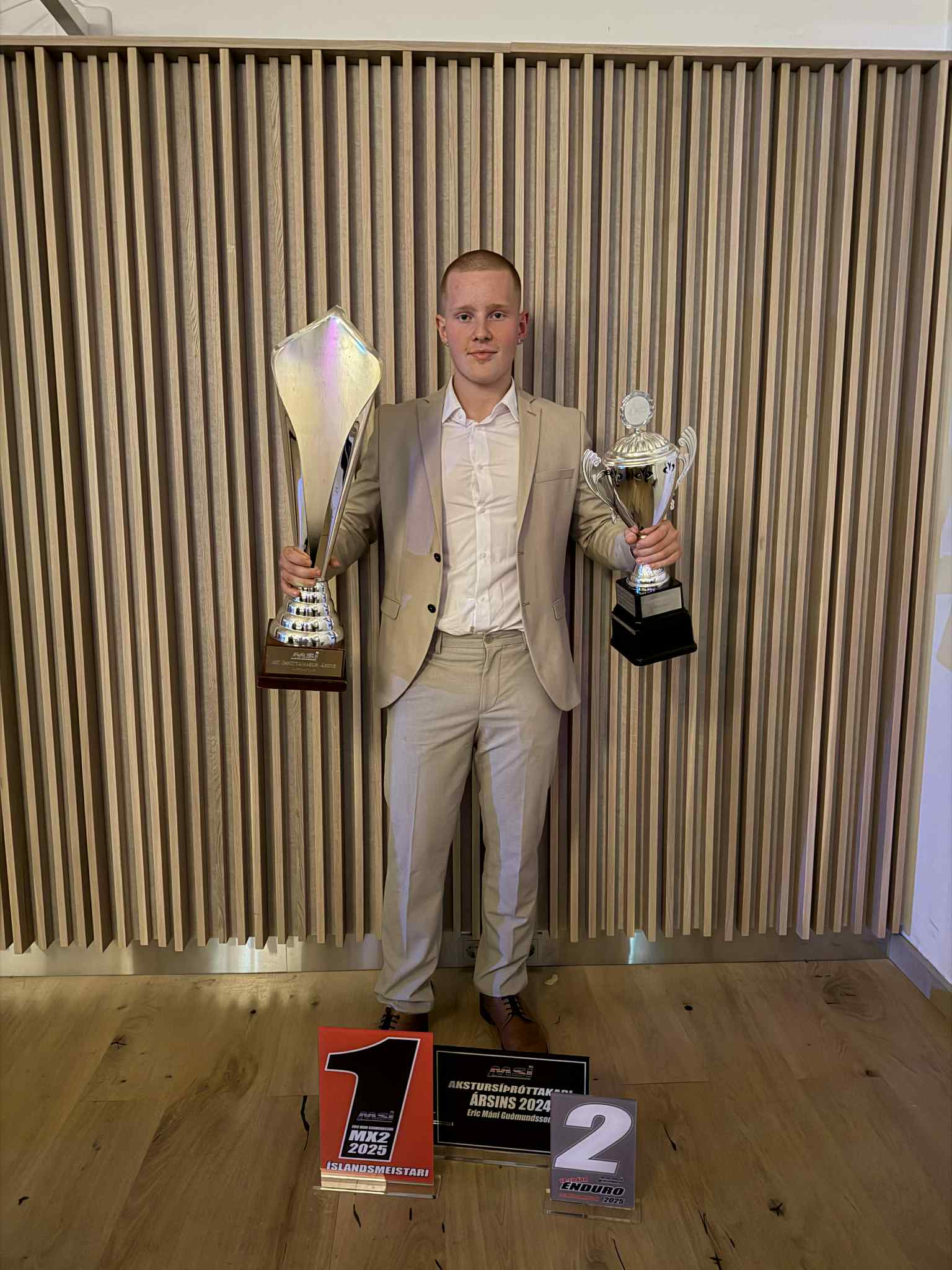 Á hófinu var einnig tilkynnt um kjör á Akstursíþróttafólk ársins 2025 og varð það Eric Máni Guðmundsson sem hlutu nafnbótina akstursíþróttamaður ársins 2025 hjá Mótorhjóla- og snjósleðaíþróttasambandi Íslands.