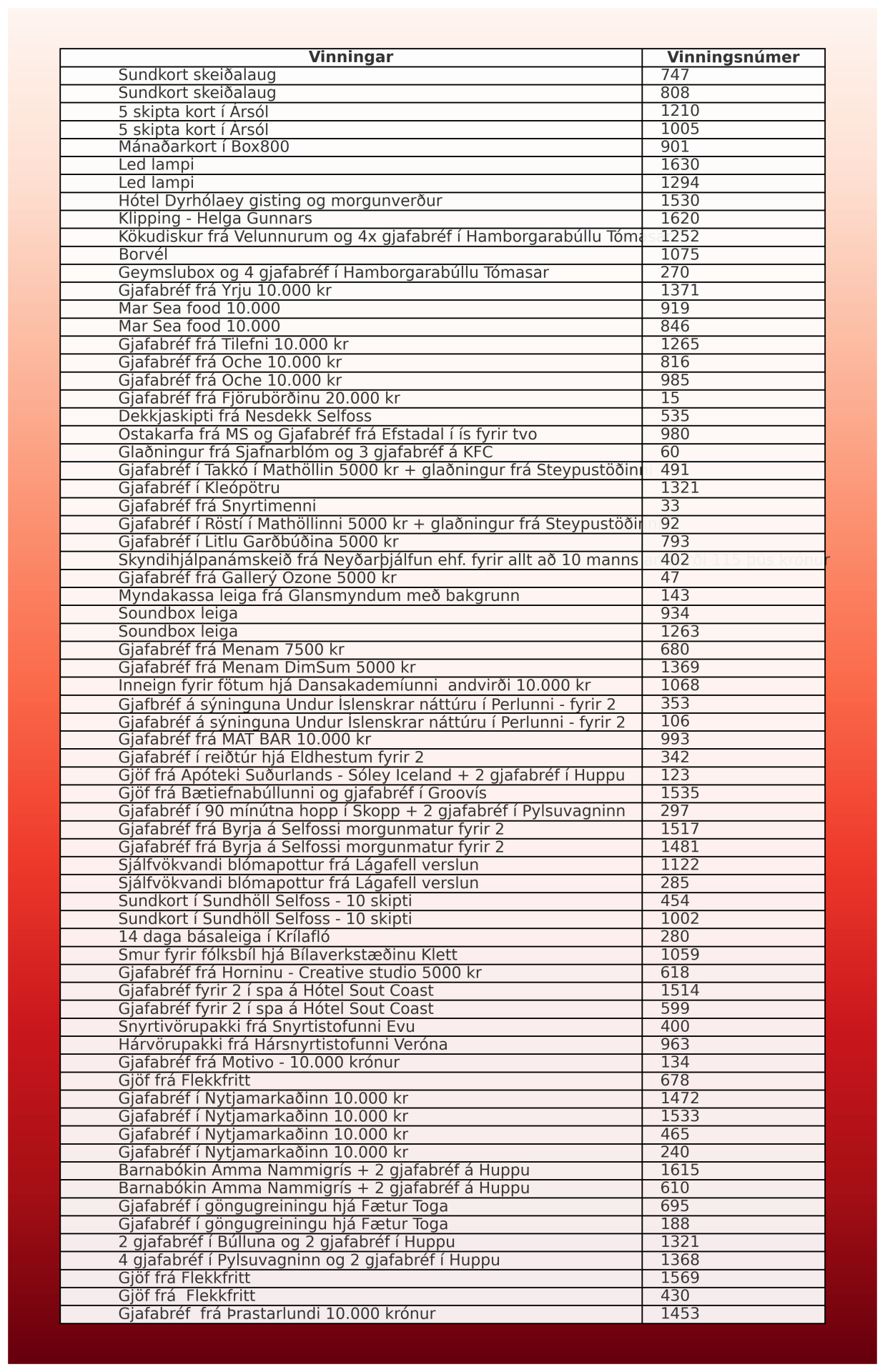 Vinningar í fjáröflunarhappadrætti 1. flokks
